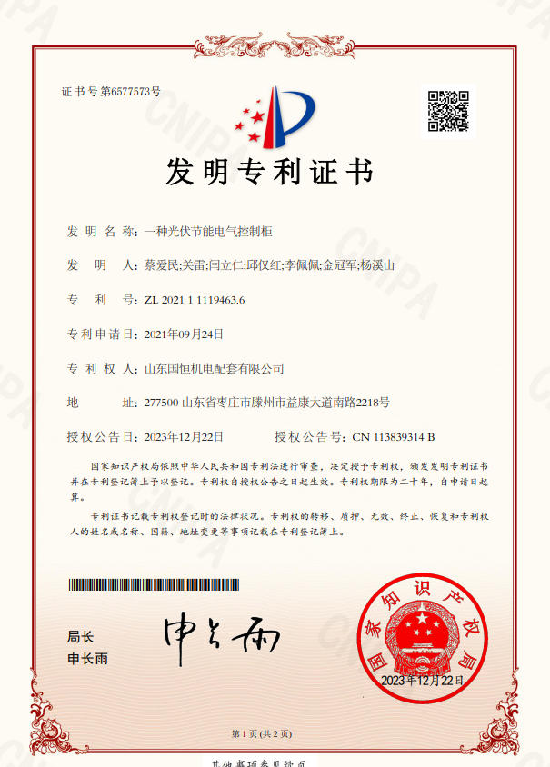 山東國恒機電配套有限公司簡      介 山東國恒機電配套有限公司是一家集新能源、高科技、智能化生產(chǎn)研發(fā)、制造、銷售為一體的綜合性現(xiàn)代化高新技術企業(yè),公司座落在魯班故里、墨子之鄉(xiāng)滕州,公司始建于2005年,注冊資本1億元,擁有各類中、高級專業(yè)技術人員100余名。主營業(yè)務涉及高科技智能電力裝備、新能源儲備輸送,220kv及以下輸變電工程勘察設計、制造、銷售、安裝、售電和智能充電樁能效運維,并從事生產(chǎn)制造交直流充電樁設備、成套開關設備、各型號高低壓開關柜、箱式變電站等電氣設備,是棗莊地區(qū)唯一一家國資入股的新能源高端品牌企業(yè)。公司擁有獨立… 【查看更多】
